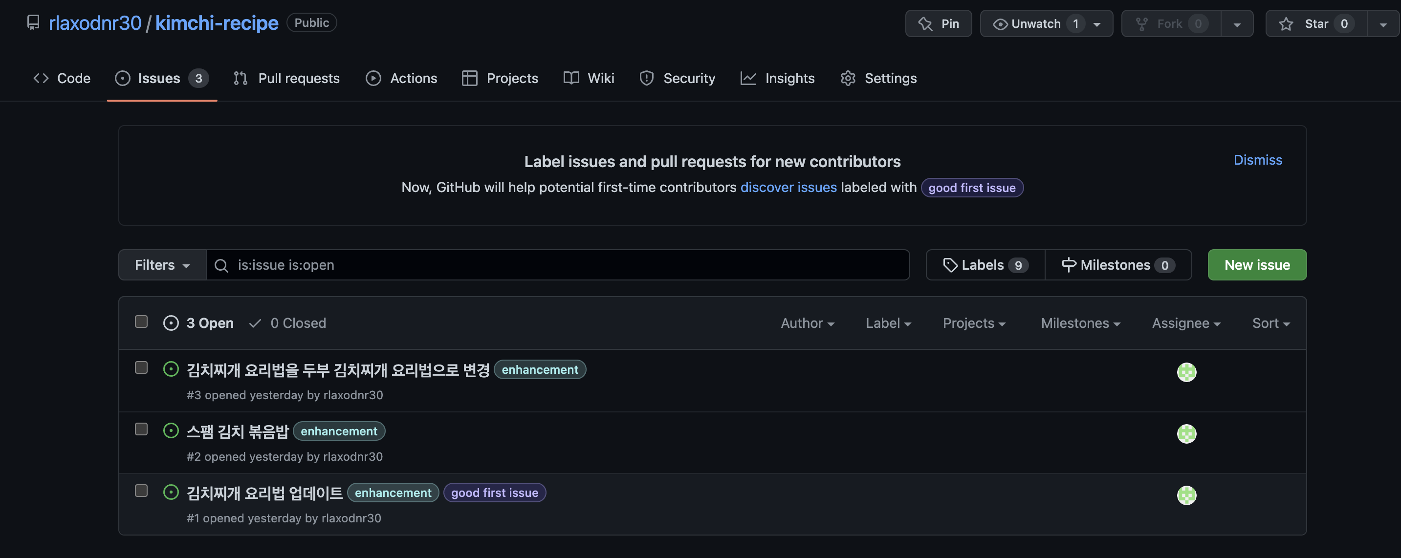 Issue를 사용하여 팀원들과 작업에 대해 논의한 후 분담하여 작업하면 좋다!!